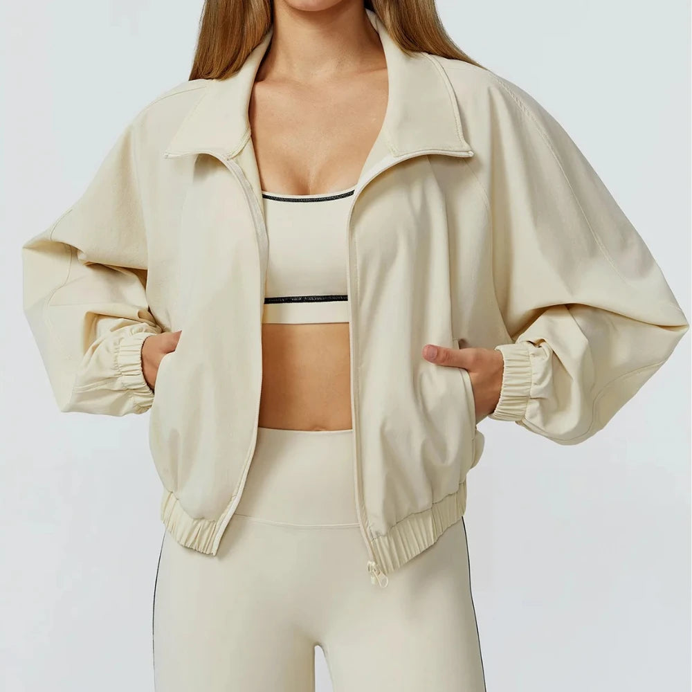 Winter Stand Collar Zipper Running Jackets For Women Long Sleeve Gym Fitness Yoga Coats Pockets Windproof Workout Sports Jacket
