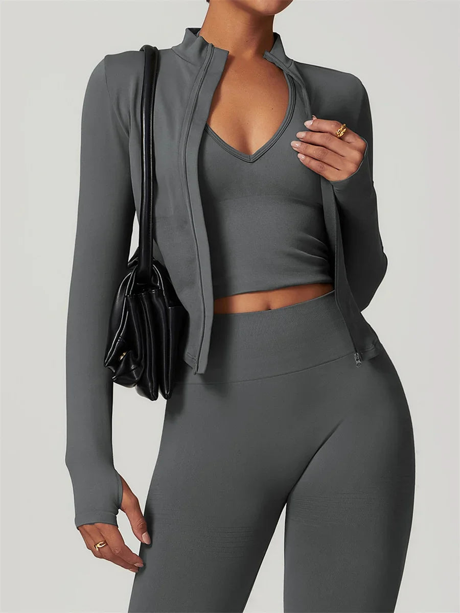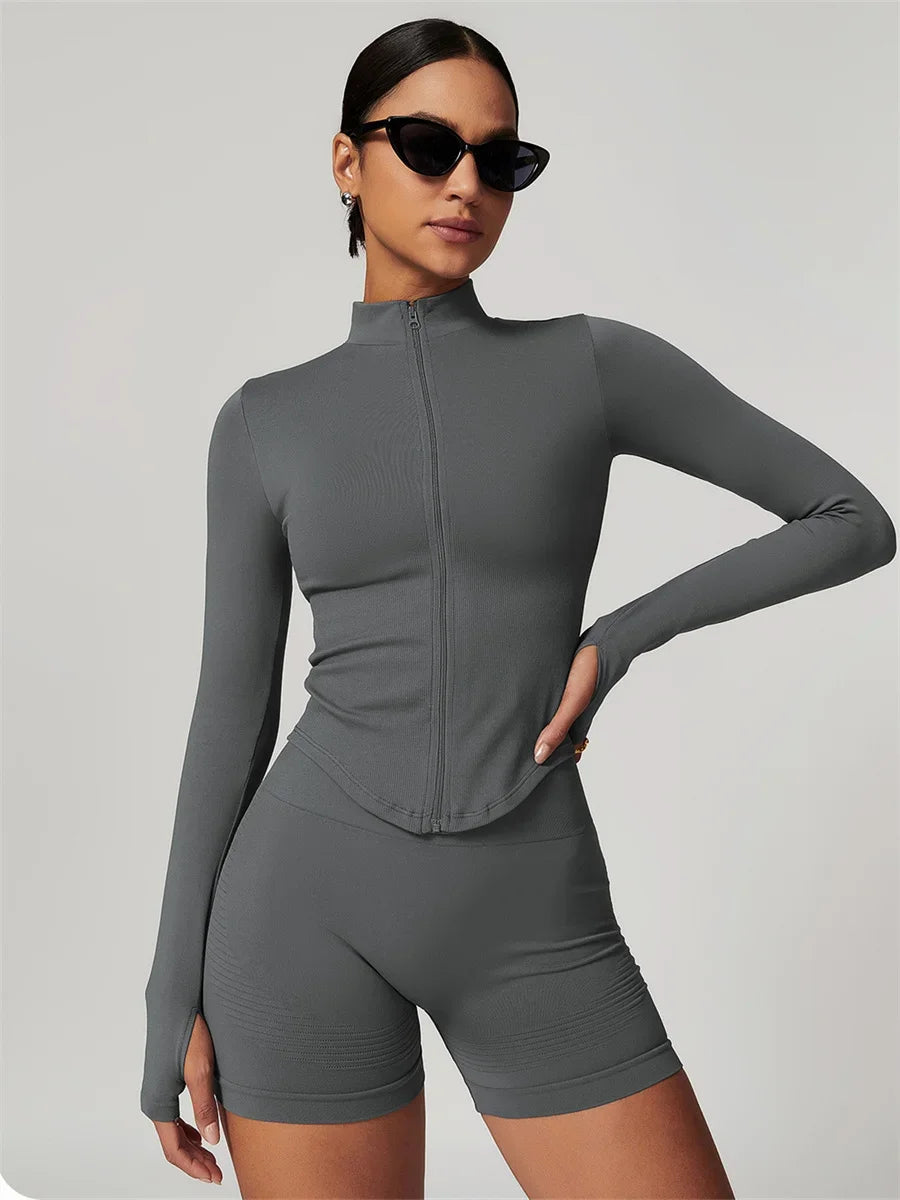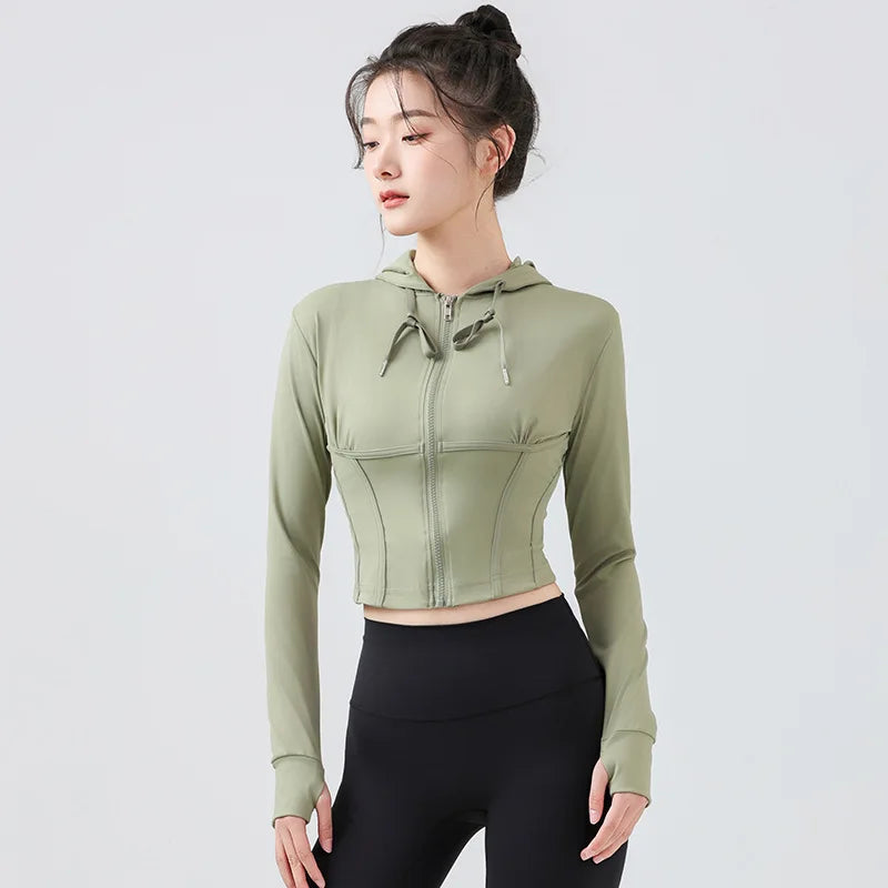 New Yoga Coat Long Sleeve Zipper Slim Fit Sport Jacket Women's Tight Quick Drying Fitness Clothes Outdoor Slimming Gym Top