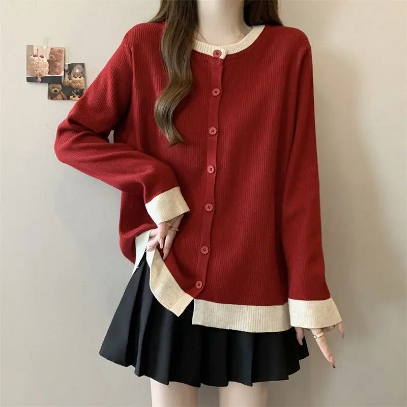 Women Clothing Contrast Plus Size Korean Tops Spring Autumn New Long Sleeve Loose Patchwork Casual T Shirts Fashion Lazy Style