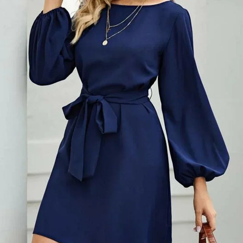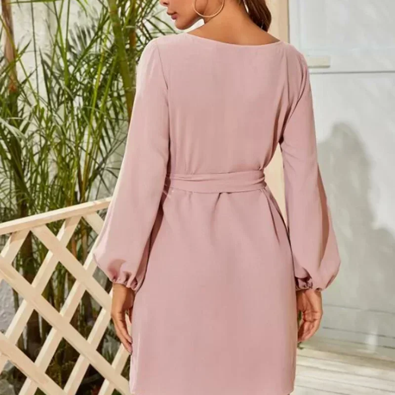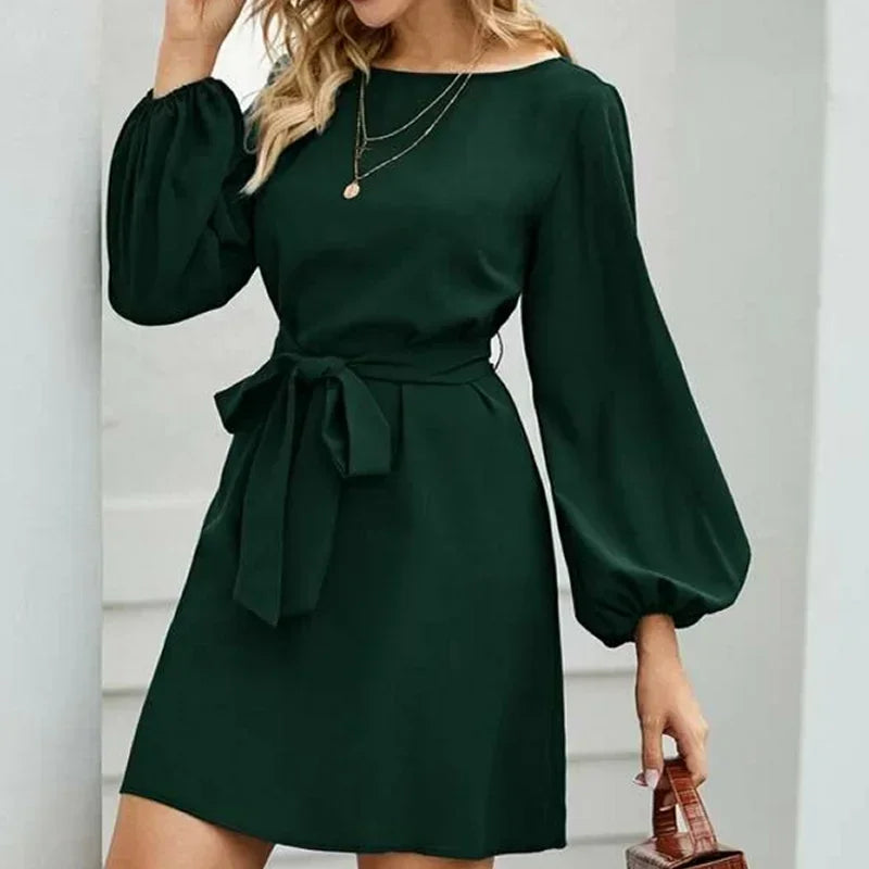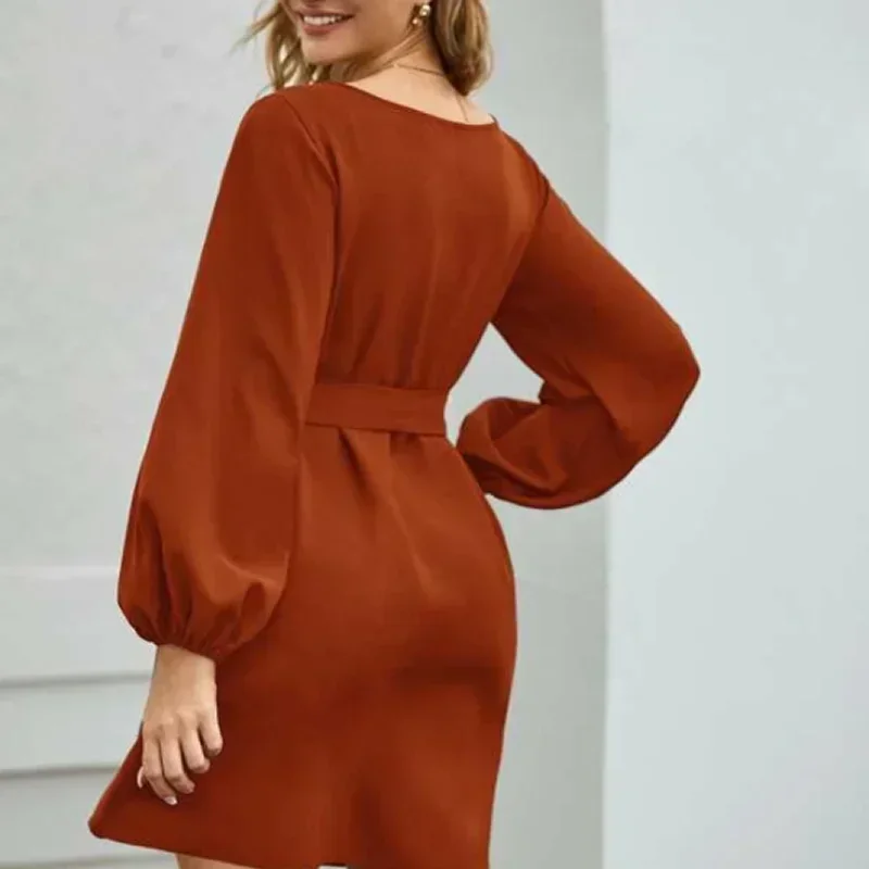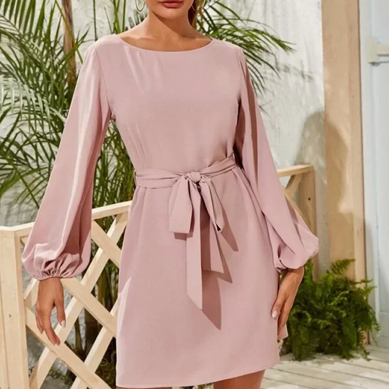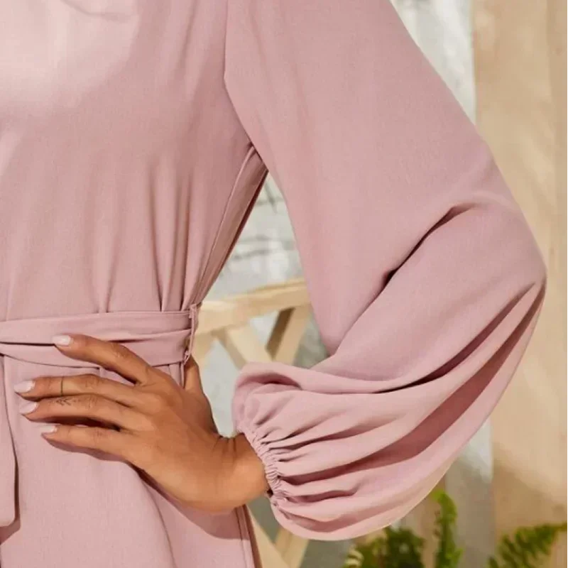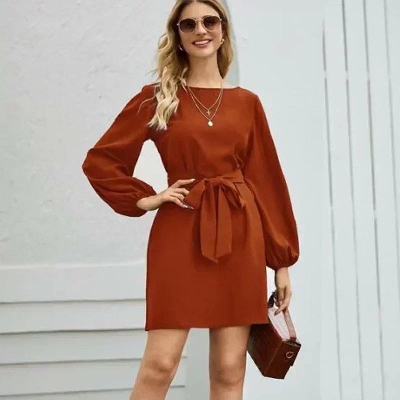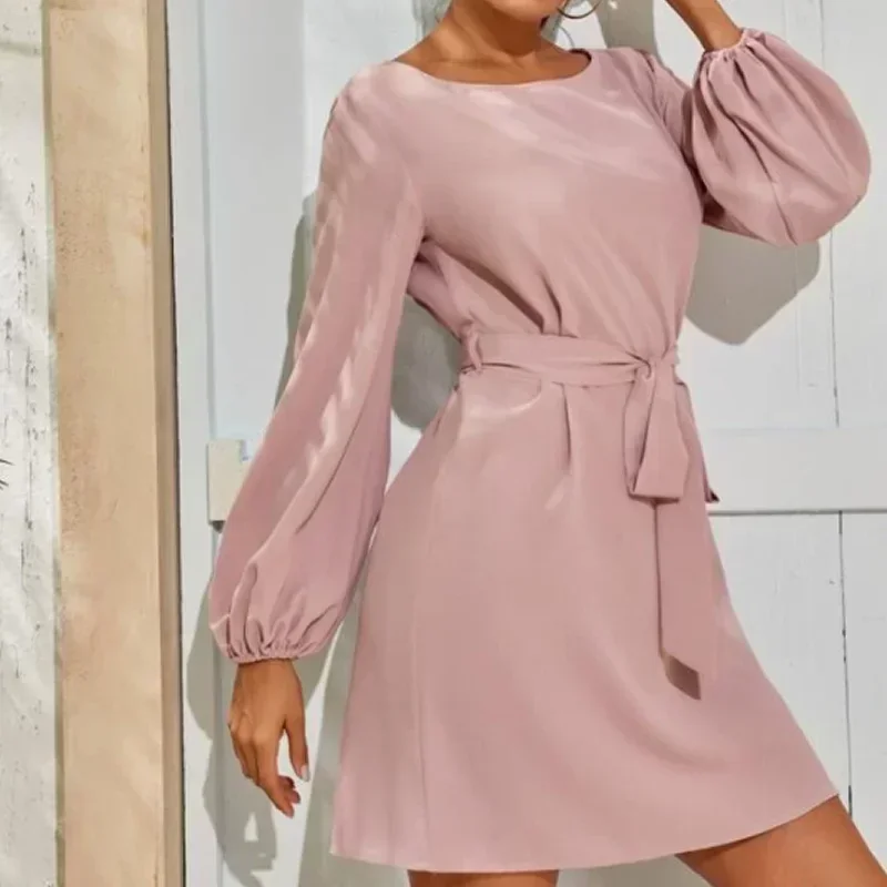 2025 Fashion Explosions Chiffon Solid Color Plus Size Loose Simple Lantern Sleeve Dress Belt Slim Temperament Women's Clothing