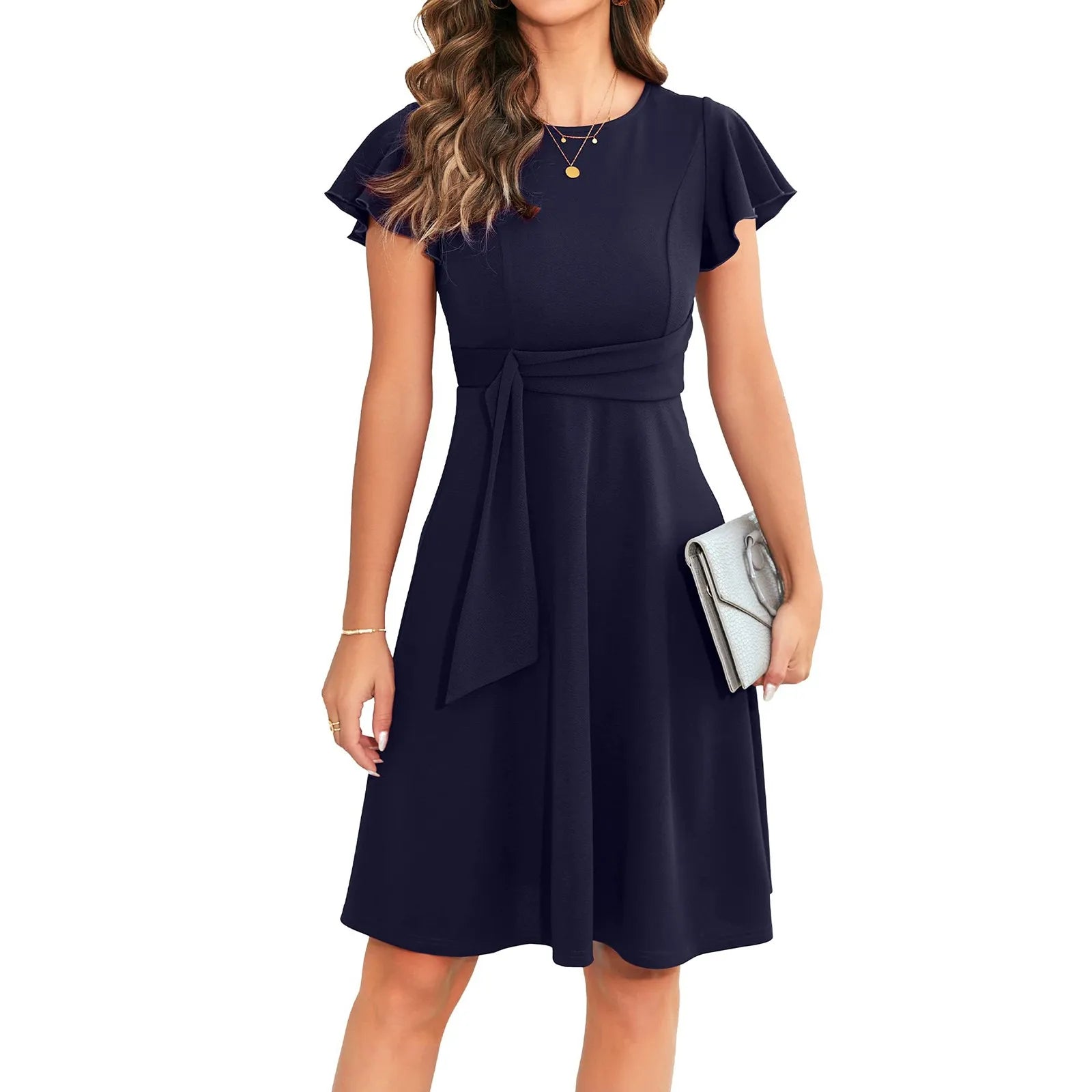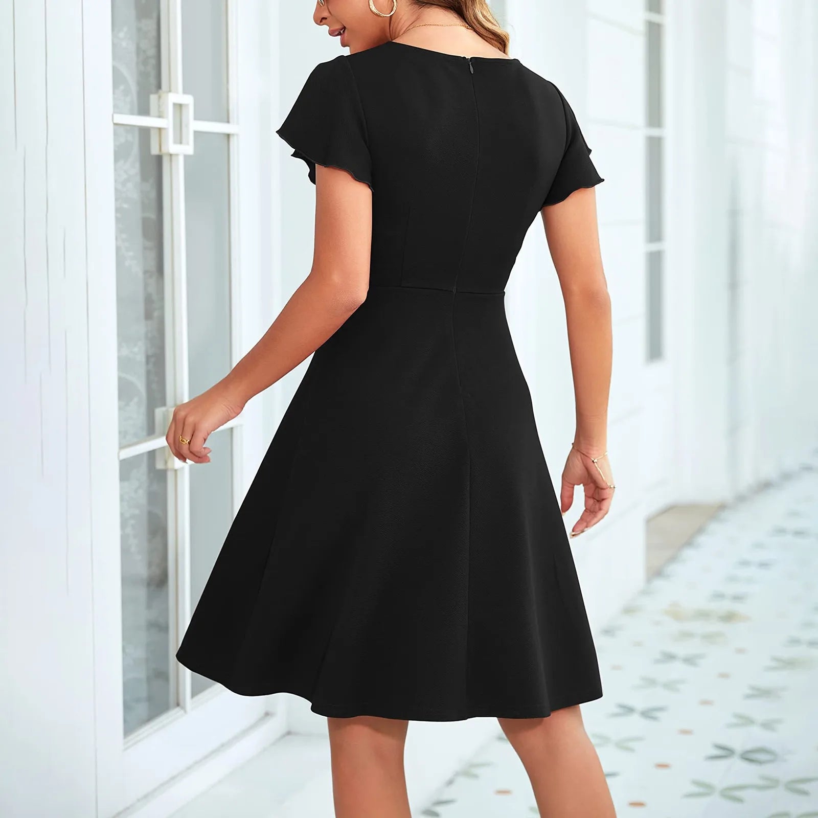 Womens Elegant Short Ruffle Sleeve Cocktail Party Dress Flared Casual Swing A-line Formal Wedding Guest Dresses