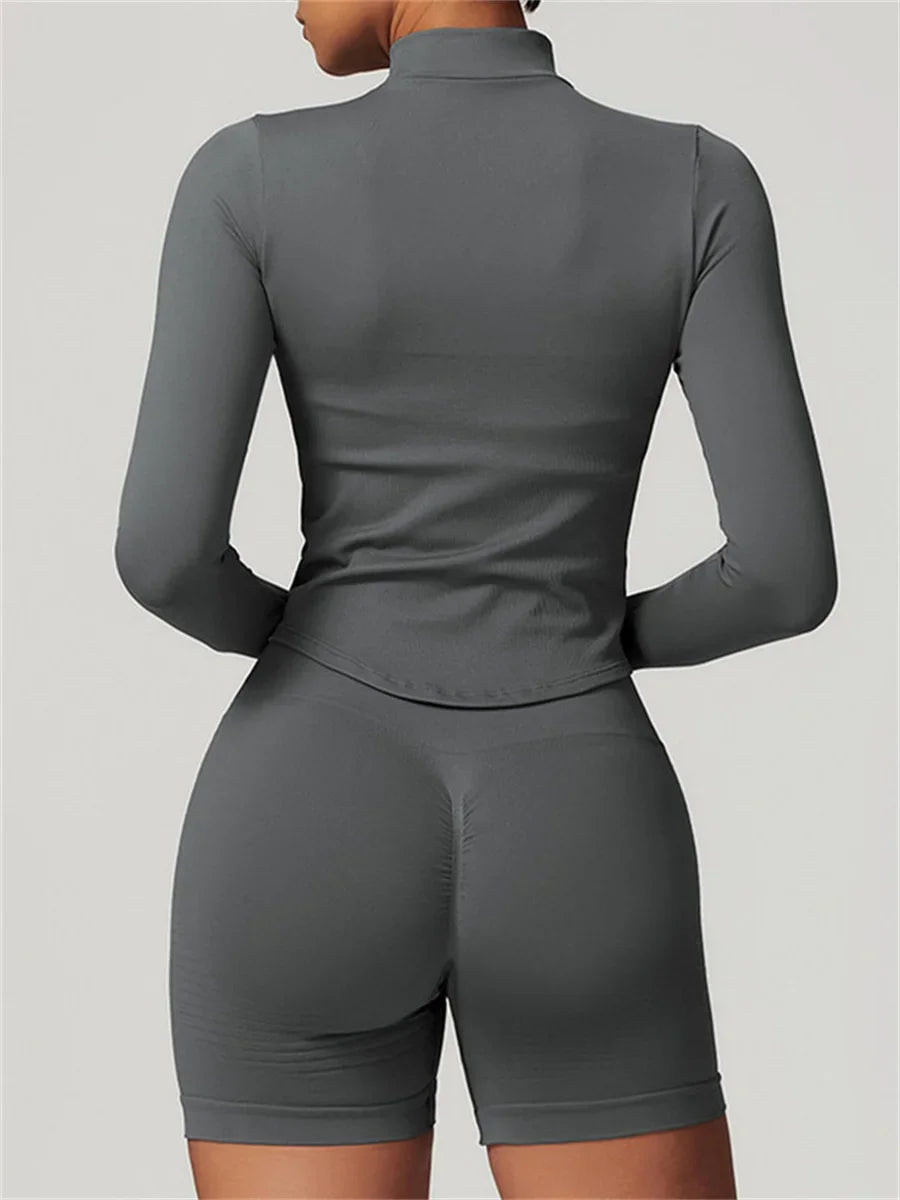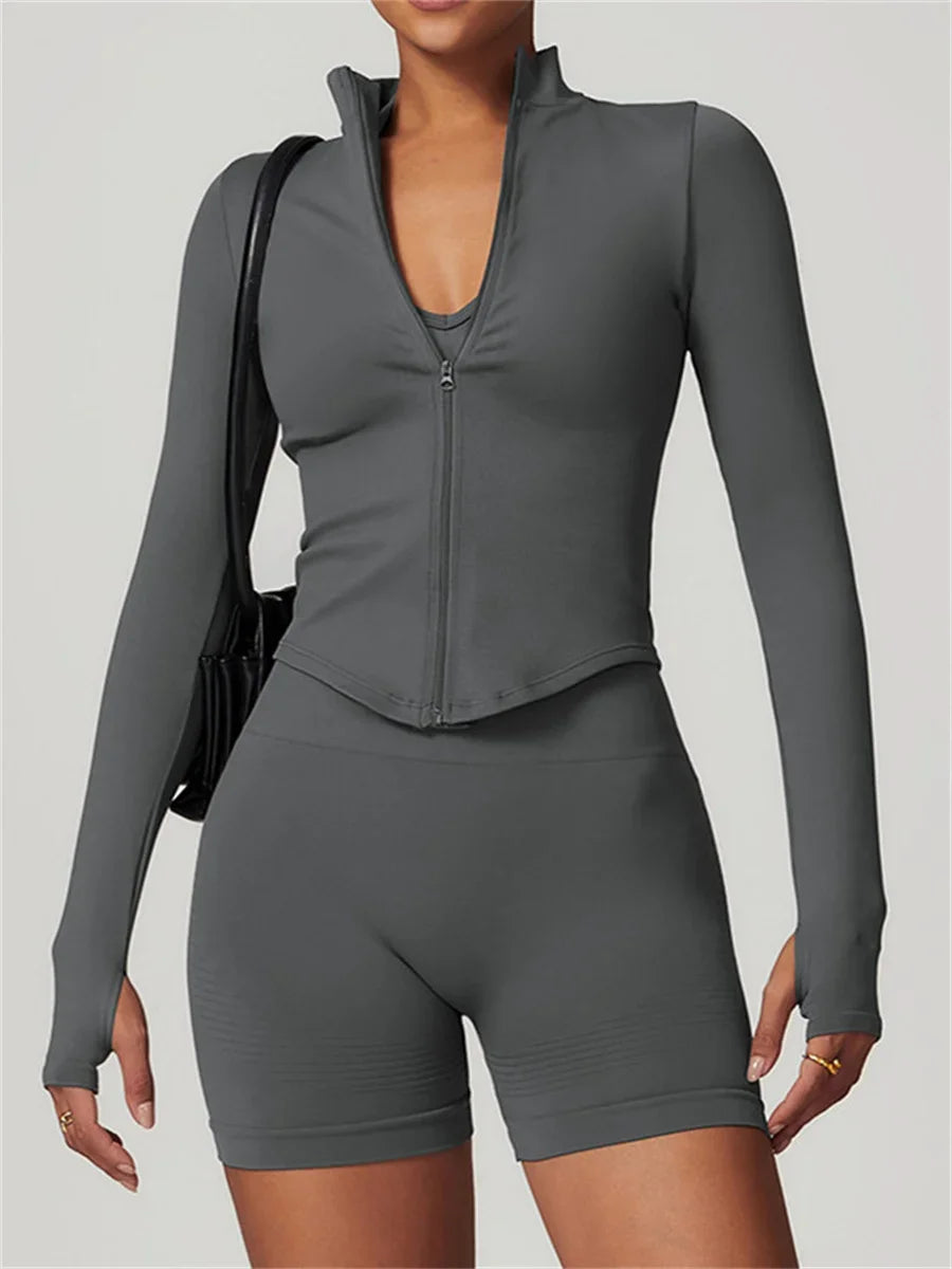 New yoga coat long sleeve zipper slim fit sport jacket women's tight fitting quick drying fitness clothes outdoor slimming Gym top