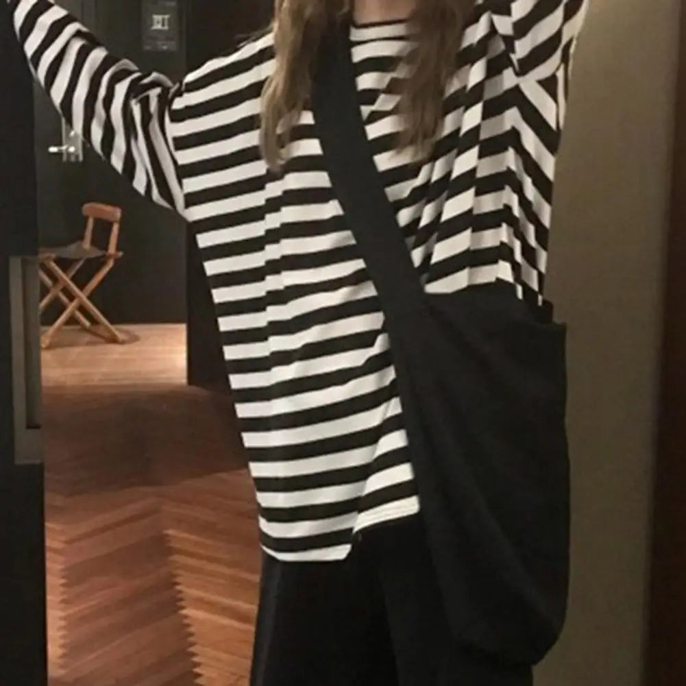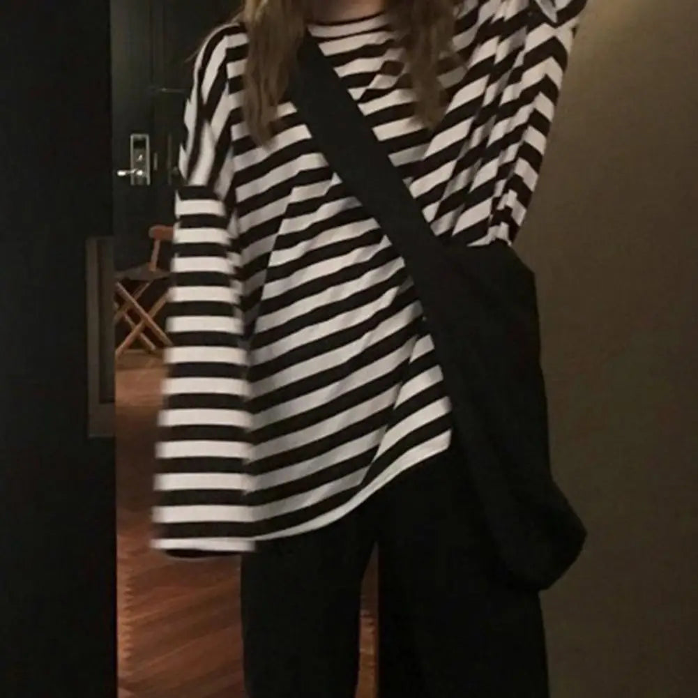 O-Neck Long Sleeves Women Blouse Spring Autumn Striped Print Oversized Pullover Top Streetwear