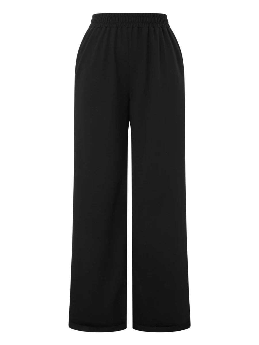 Women Wide-Leg Pants Solid Color Elastic High Waist Loose Trousers Fall Casual Sweatpants Straight BottomsSize(cm)