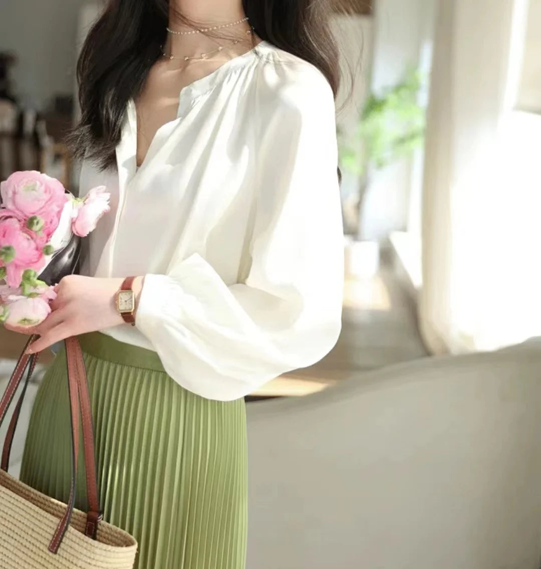 Sleeve Style: lantern sleeve