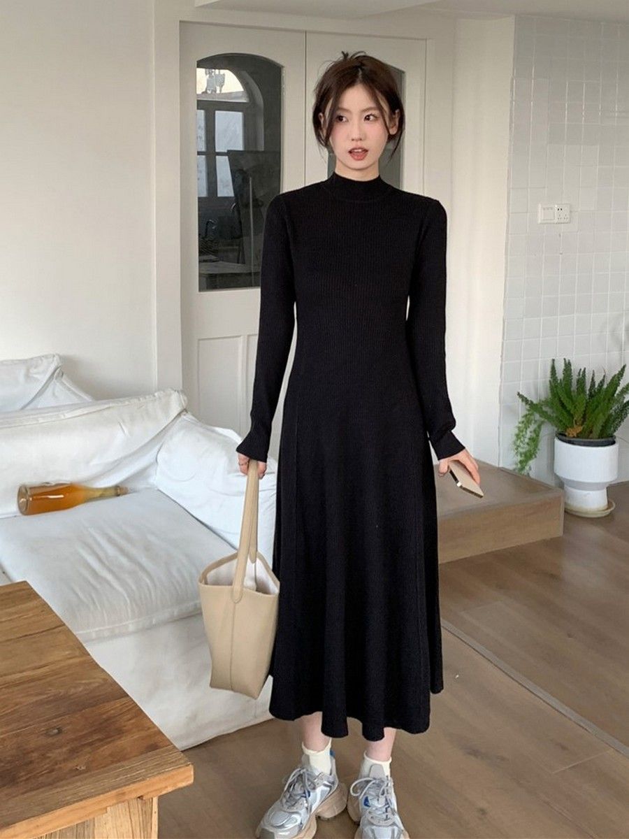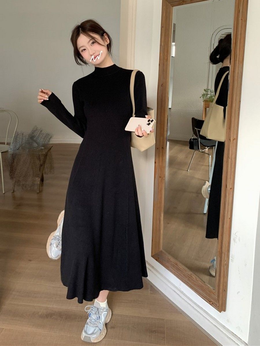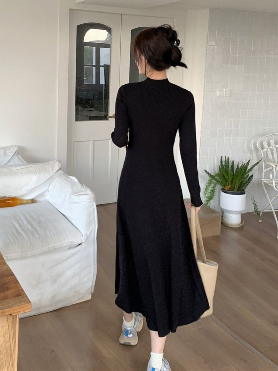 Embrace elegance with this chic French style dress, perfect for autumn and winter occasions.