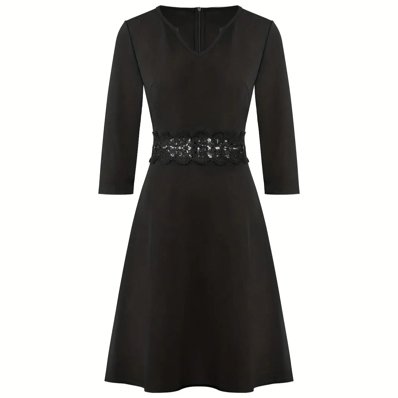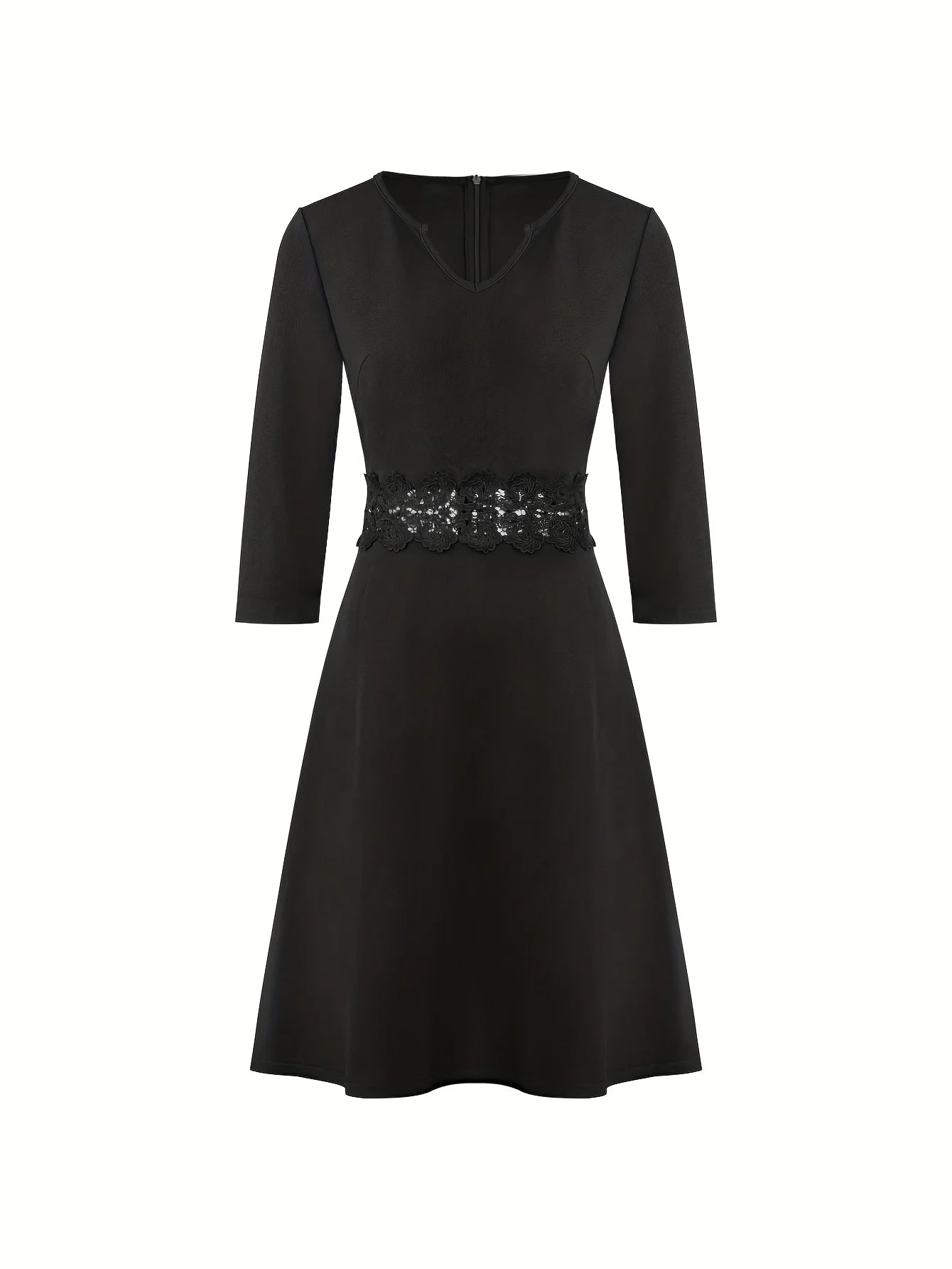 Featuring a notched neck and lace panel, this dress exudes elegance, perfect for cocktail parties and evening events.