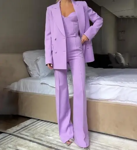 Women's Elegant Pants Sets Autumn Temperament Commuting Fashion Suit Jacket & Corset Pants with Camisole Top Three Piece Set